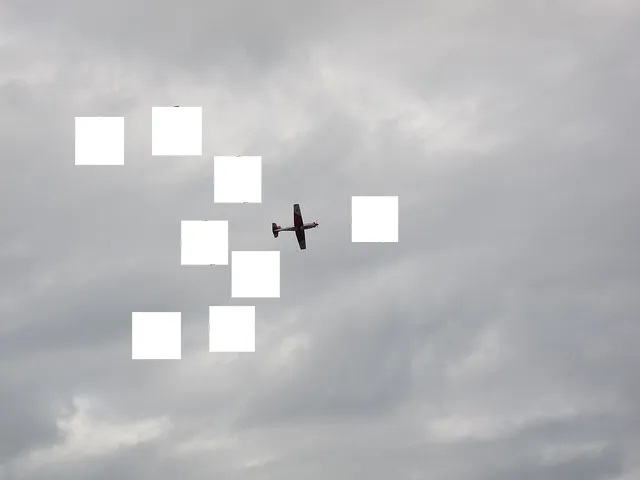 Les images restantes, amputées de tout ou partie de leurs sujets nous racontent aussi d'autres histoires, comme cet avion qui, seul, parvient à échapper à la détection qui, telle une batterie anti-aérienne, vient invisibiliser ses coéquiuipiers, ou ce dialogue inattendu entre le vide et les lampes d'un plafond.