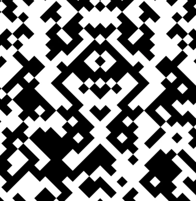 Ce projet de design génératif, développé avec Processing dans sa version originale, met en jeu une grille de losanges symétriques dont les agencements binaires – en noir et blanc – appellent la projection. Très vite, l’œil humain y devine des visages, des expressions, des figures. Phénomène bien connu : la paréidolie. Mais ici, c’est l’ordinateur qui produit ces formes, et nous qui les cherchons. Une boucle se referme : celle de l’humain comme machine à reconnaître, et de la machine comme générateur de motifs à interpréter.