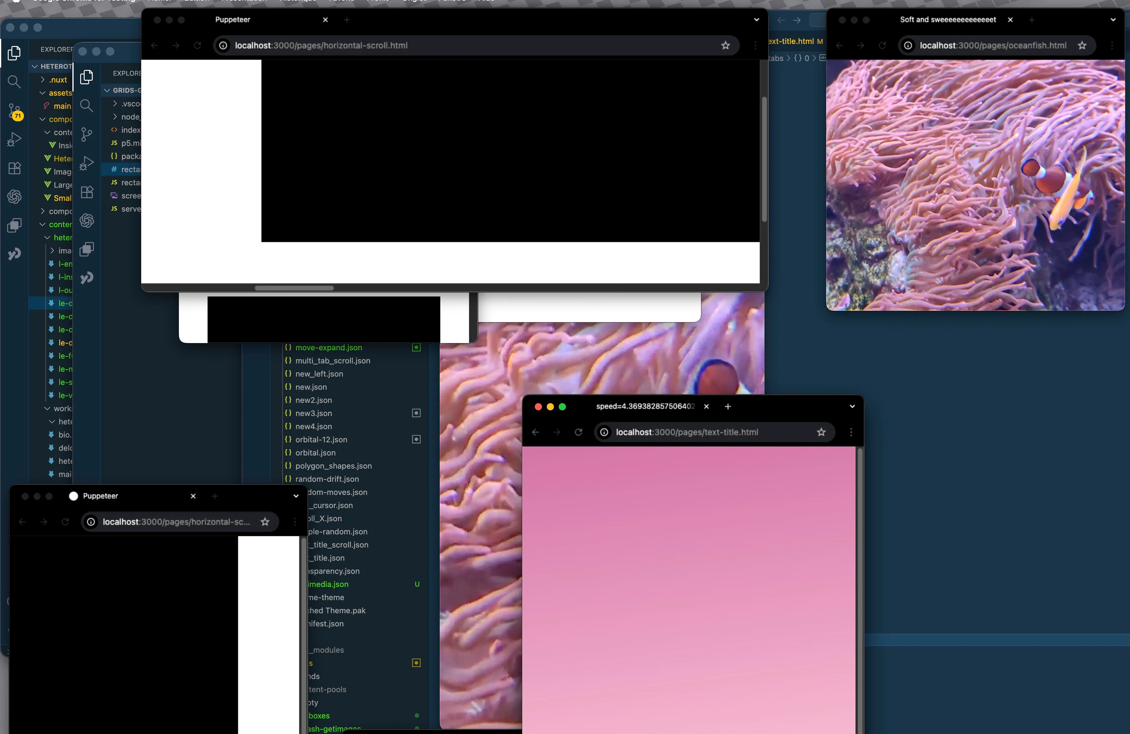 CaptureDans Puppeteer (marionnettiste en anglais), il s'agit de déléguer au programme le contact avec l’interface. L’installation est constituée d’une projection en temps réel. À l’écran, un script autonome navigue entre des pages web, redimensionne les fenêtres, les fait défiler, clique, zoome, passe d’onglet en onglet — rejouant nos gestes quotidiens.