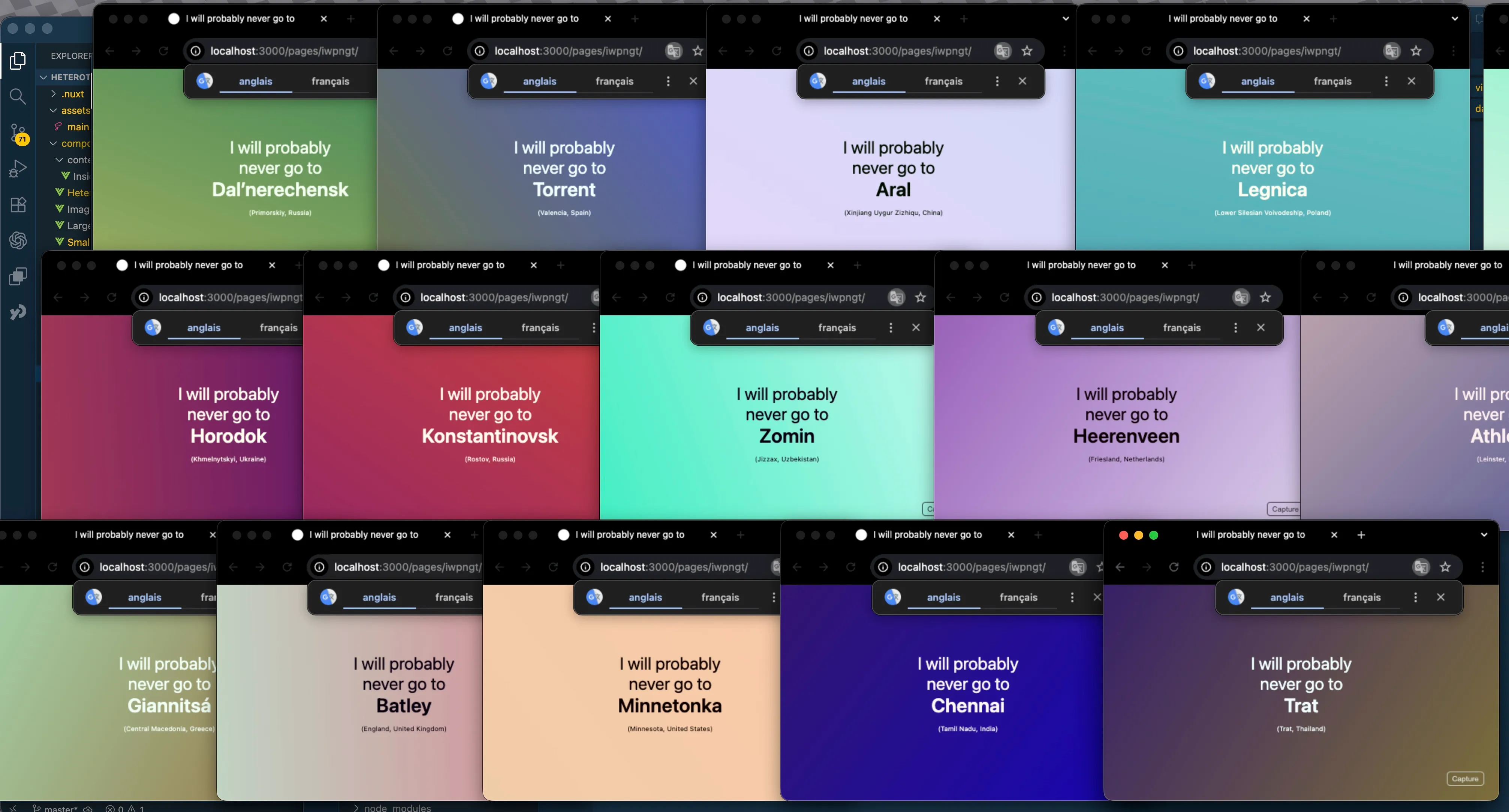 Le projet est construit à la fois comme une oeuvre générative et un scénario écrit. Les URL distantes ou locales sont chargées à partir des données contenues dans les fichiers de scénarios, décrivant chapitres et scènes (une scène étant composée d'une fenêtre de navigateur, avec possiblement plusieurs onglets). Ces différentes scènes et leurs propriétés de durée, vitesse, actions (click, scroll, drag, etc.) sont définies dans des fichiers json externes.